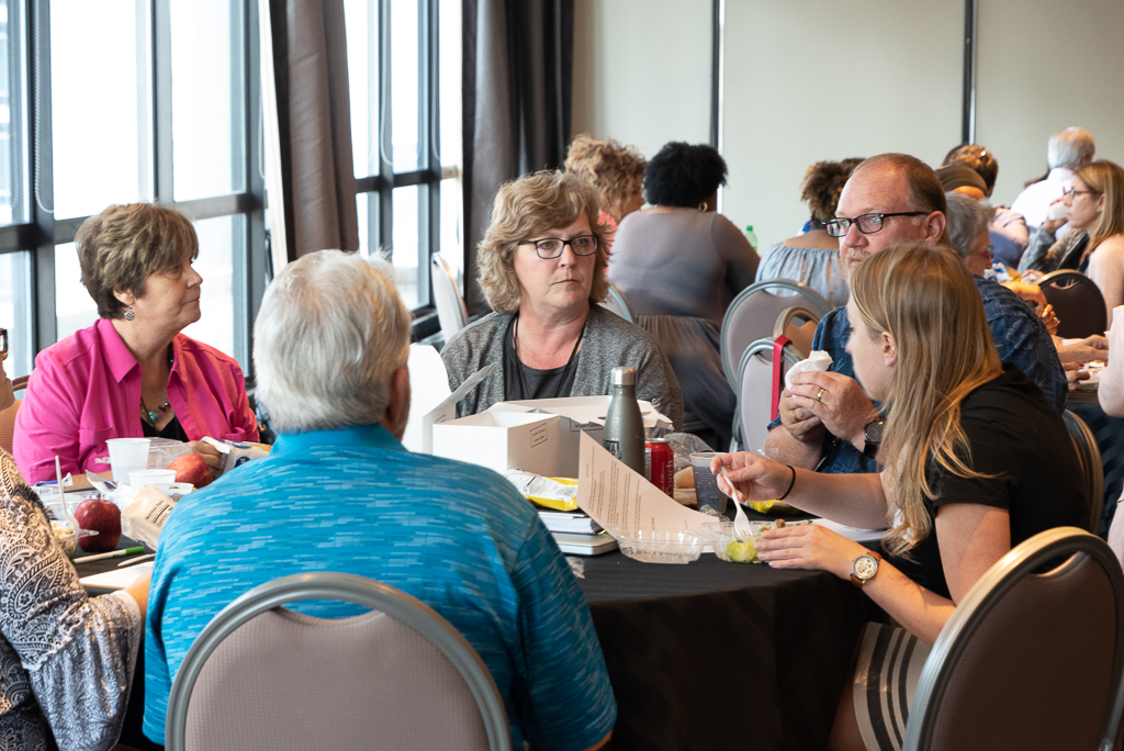 After Monday’s stimulating discussions and some free time to explore the city, volunteers gathered for their final dinner of the conference — a birthday party celebrating Blessings in a Backpack turning 10! We cut a funfetti cake, sang happy birthday, and most importantly, gave volunteers an opportunity to share with the group why they do what they do, better known as “mission moments.”